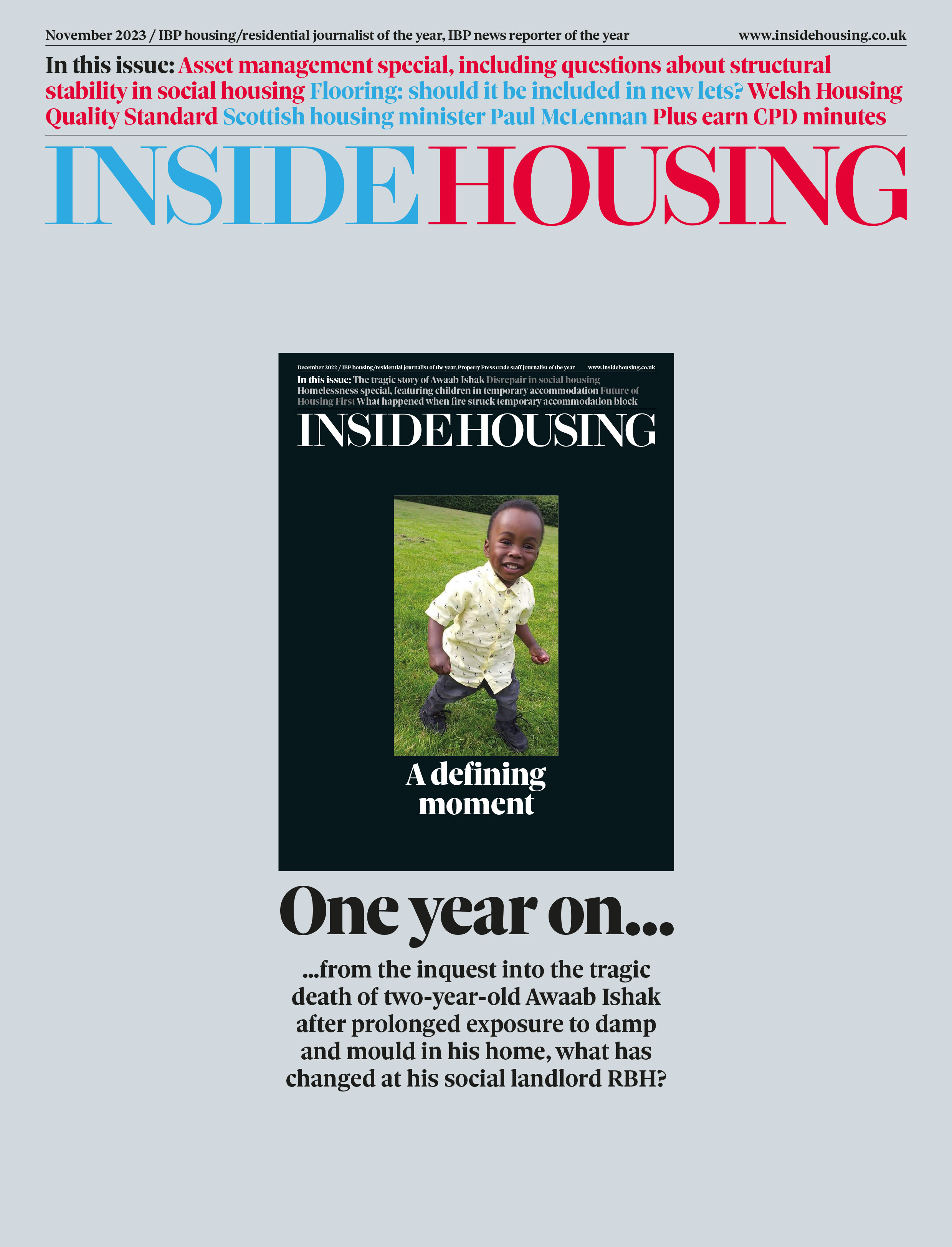 What has changed at RBH, the social landlord of two-year-old Awaab Ishak who died as a result of prolonged exposure to damp and mould in his home; asset management special, including questions about structural stability in social housing and the new Welsh Housing Quality Standard; plus earn CPD minutes; an interview with the Scottish housing minister; a new model of housing for young people; plus more features, analysis and the latest news and comment