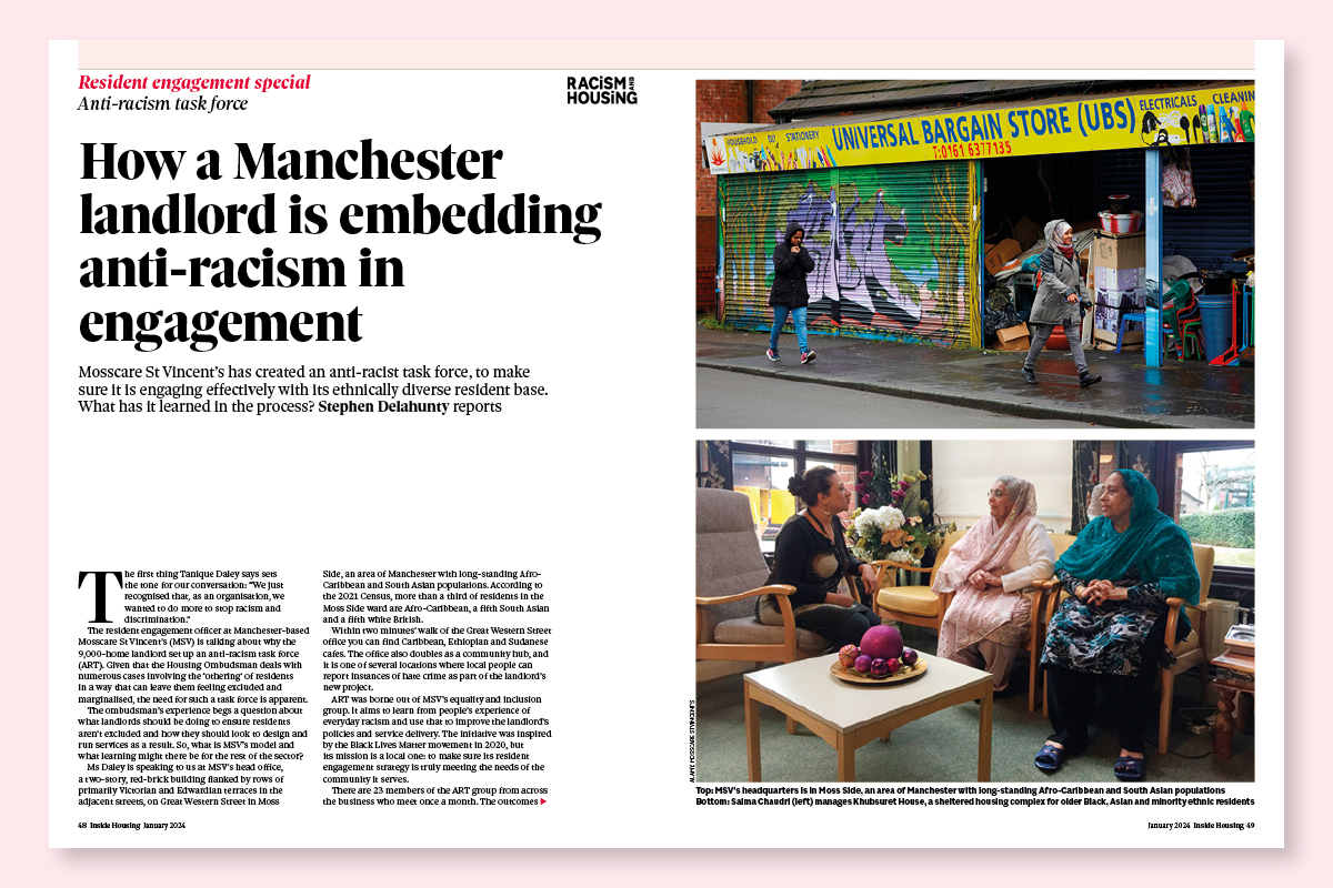 This story looked at housing association Mosscare St Vincent’s anti-racism taskforce and how this contributed to its tenant engagement work.