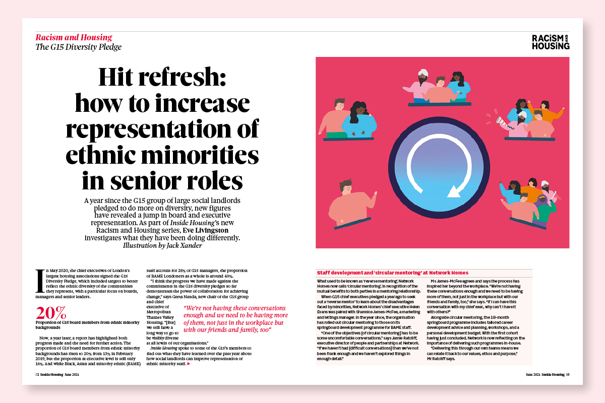 The chief executives of G15 landlords signed a Diversity Pledge in 2020. This story looked at the actions that followed and how the group of large London associations was able to shift senior appointments.