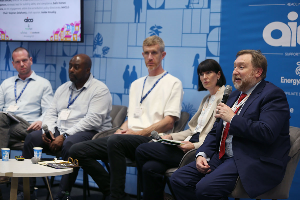 He was joined on stage by senior directors at Salix Homes and Newlon Housing Trust. Both landlords set out the challenges they had faced during the remediation process: workforce, quality and procurement issues; tenant engagement; difficult asset management and development pipeline decisions to fund this work.