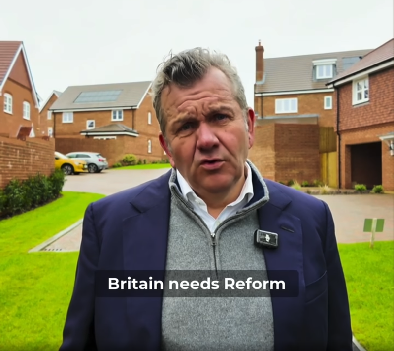Mr Dudley announced he was joining Reform in a video posted on LinkedIn and X that showed him talking from a new build estate in his home patch of Maidenhead. The video was also cut with an image showing an anonymous group of men walking in a group. Over this scene, he criticises the former Conservative government for “failing to build the number of new homes Britain needs and letting record numbers of people in from abroad”.