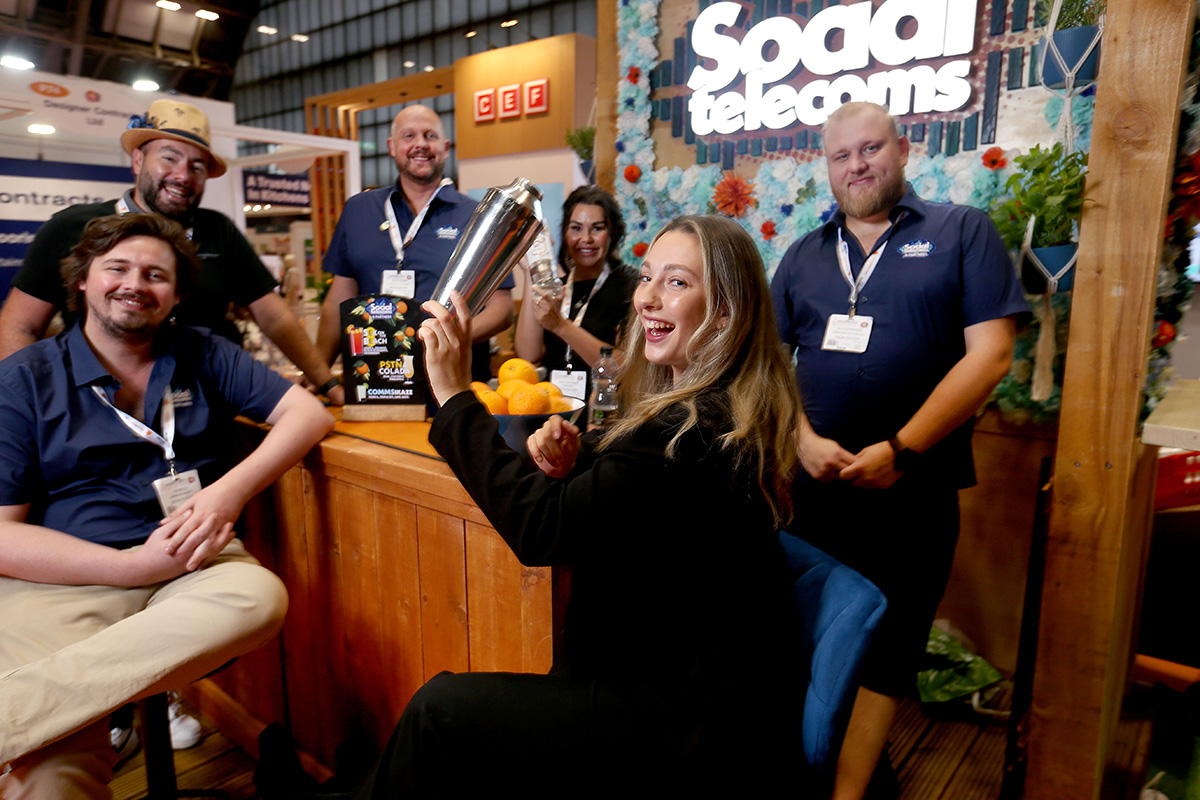 Partner support Chloe Nicholls (left) and senior account manager Sonia Sahota-Sandhu sport cupcakes at the Energy Angels stand