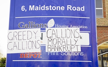 ‘Greedy Gallions’. ‘Gallions out’: these angry messages were brought to the doors of an until-recently inconspicuous south London landlord by 25 protestors last month. The ultimate beef of these residents of Thamesmead Town was made loud and clear in thick black ink: ‘Service Charge: all charge and no service.’