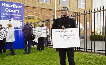 Protestors vent their anger at Gallions’ headquarters in Sidcup, Kent